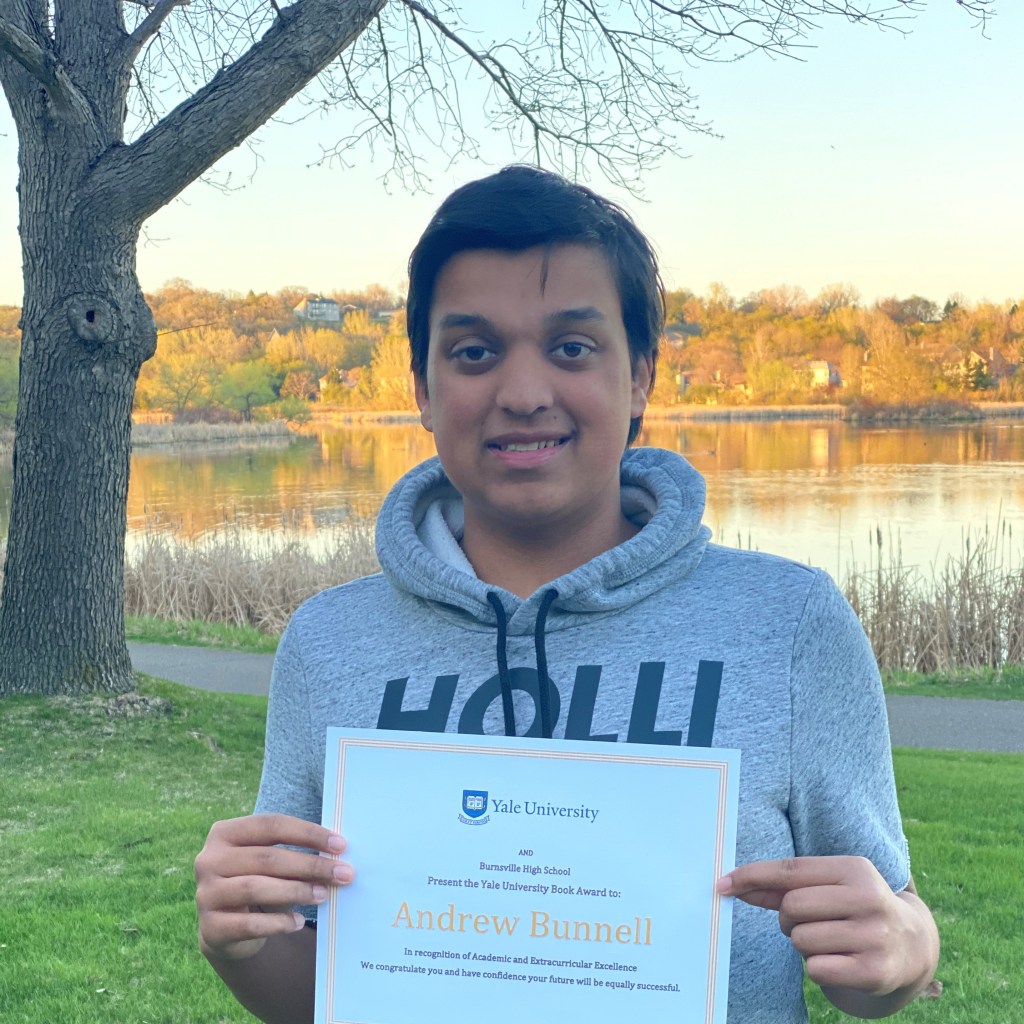 Andrew was recently selected as the Yale University College Book Award Recipient. This award recognizes juniors in high school with strong academics and service to their community