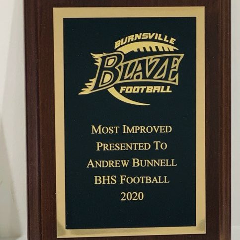 Voted by the Burnsville High School Varsity Football Coaching Staff, Andrew was recognized as the most improved player!